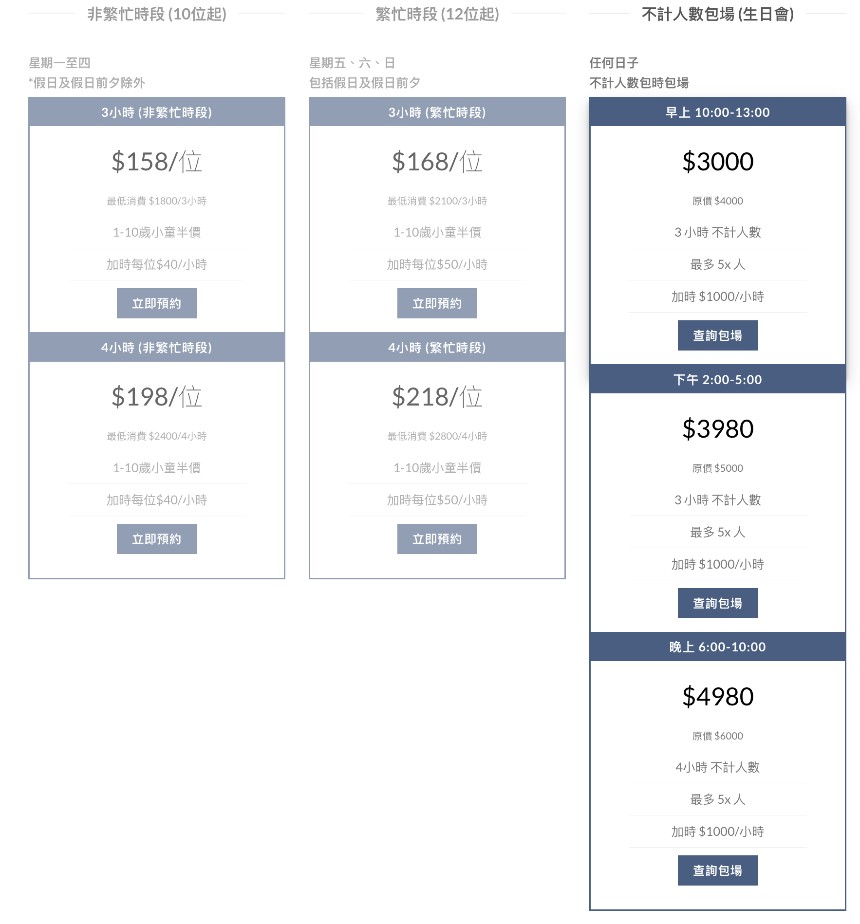 - 不計人數包場優惠,較 Playhouse 抵玩,又有大人設施
